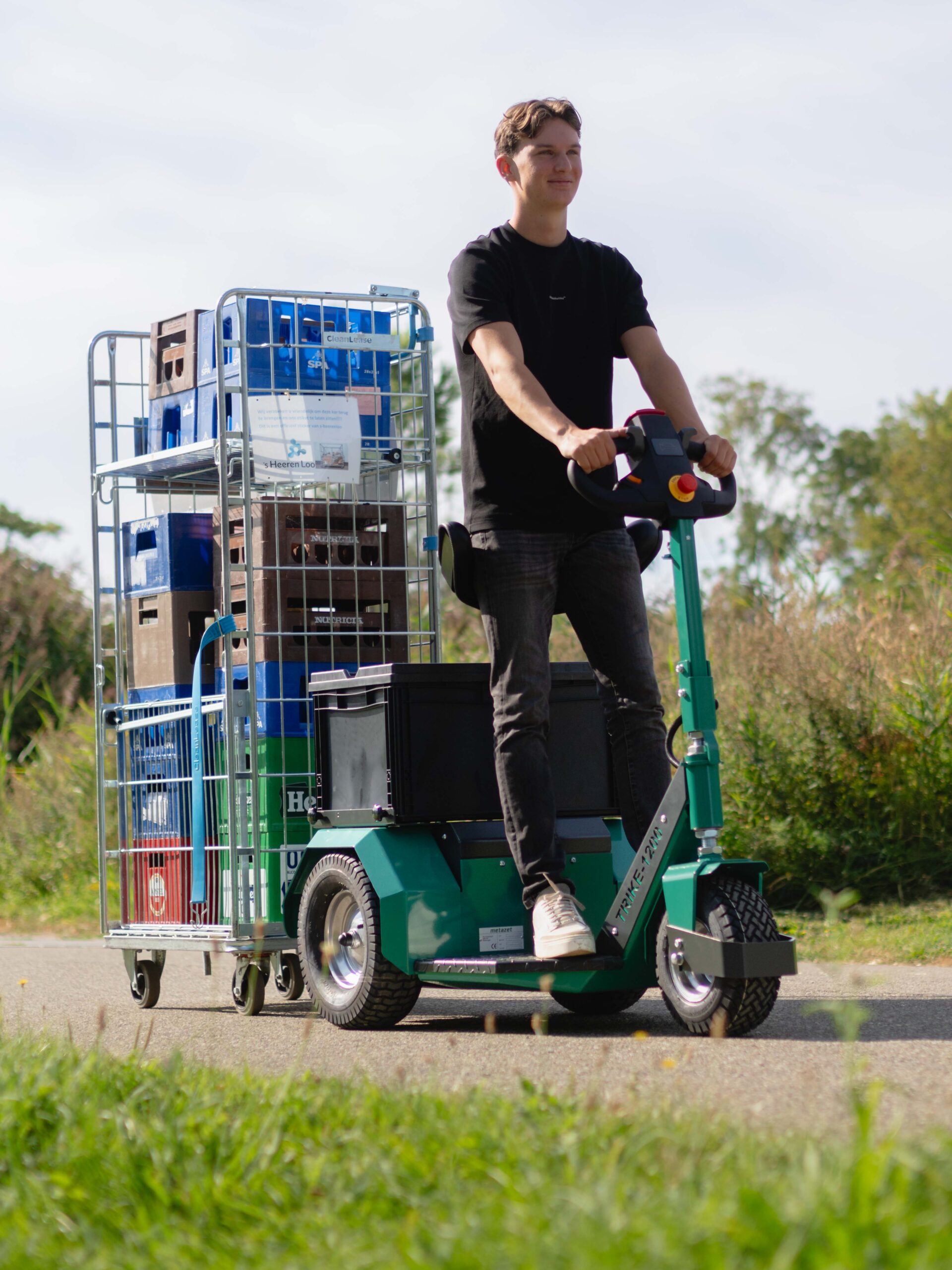 De Trike-1200 kan worden aangepast met extra opties zoals een krat, rugsteun of specifieke koppelsystemen. Voor nog zwaardere transporttaken biedt de Trike-3000S een oplossing met een hoger trekvermogen.